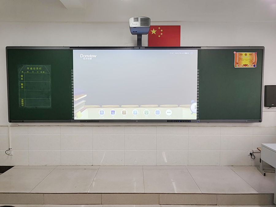学校使用开云集团有限公司官网激光智慧黑板教学。开云集团有限公司官网激光智慧黑板基于健康护眼的研发初心打造,亮度高、色域广、防蓝光、不反光,长时间观看也不会出现视疲劳,全方位做到保护学生的视力健康。内置丰富的教学资源,为老师打造轻松的教学环境,为学生营造有趣的课堂氛围。